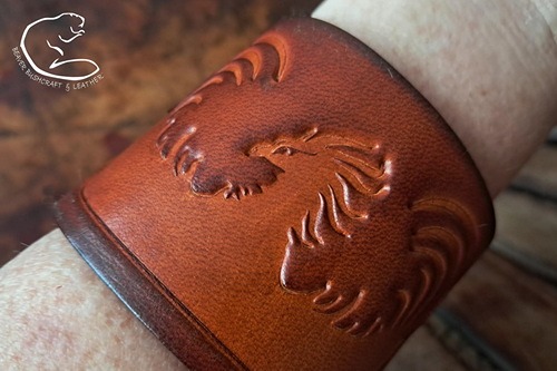 Hand-crafted leather cuffs by Beaver Moon Leather. All with a touch of a the Urnes style from the Viking period. Exclusively designed and handmade by us at Beaver Bushcraft.